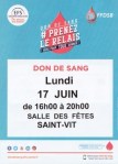 Don de Sang le 6 juillet à St Vit, 8h30 – 12h30