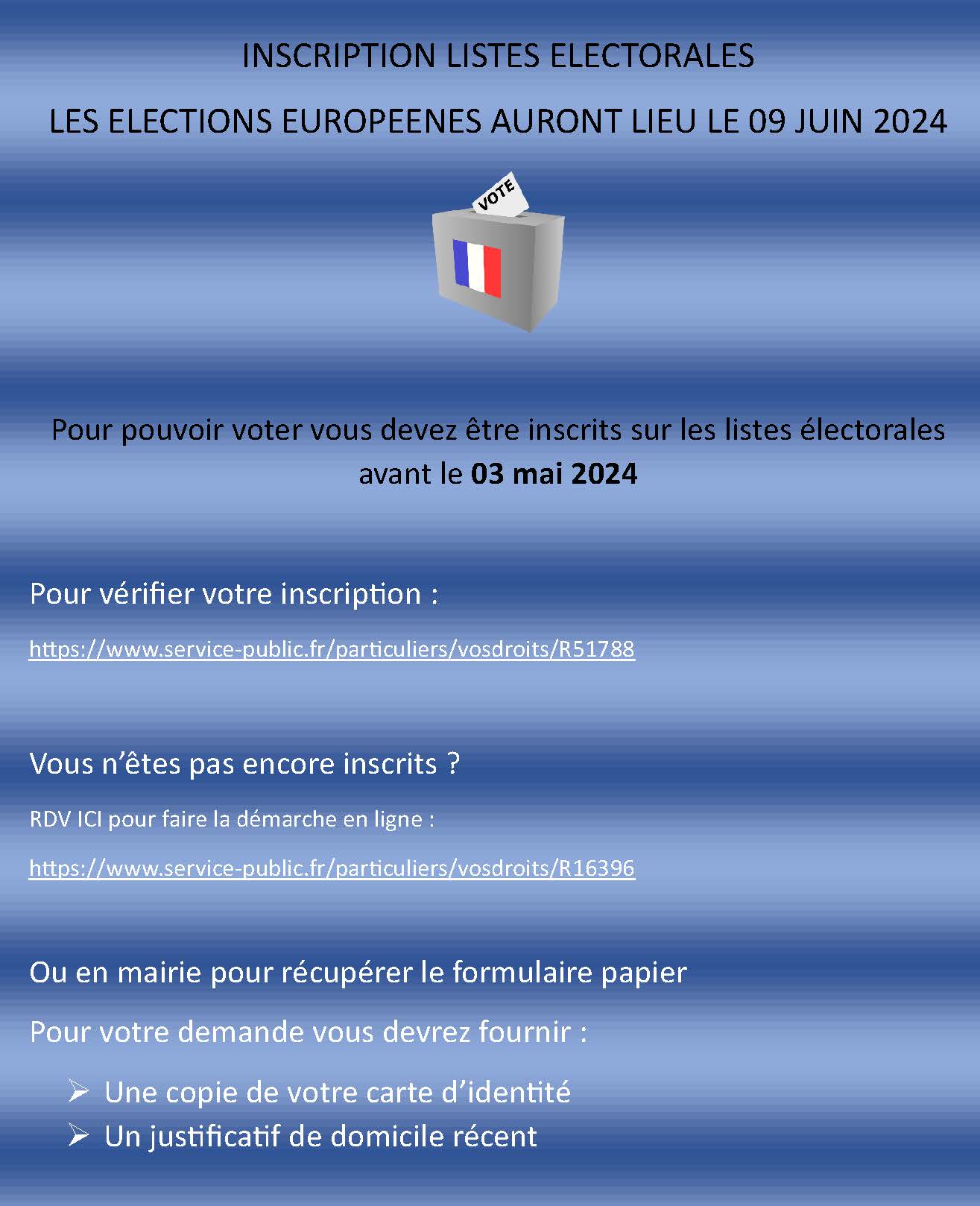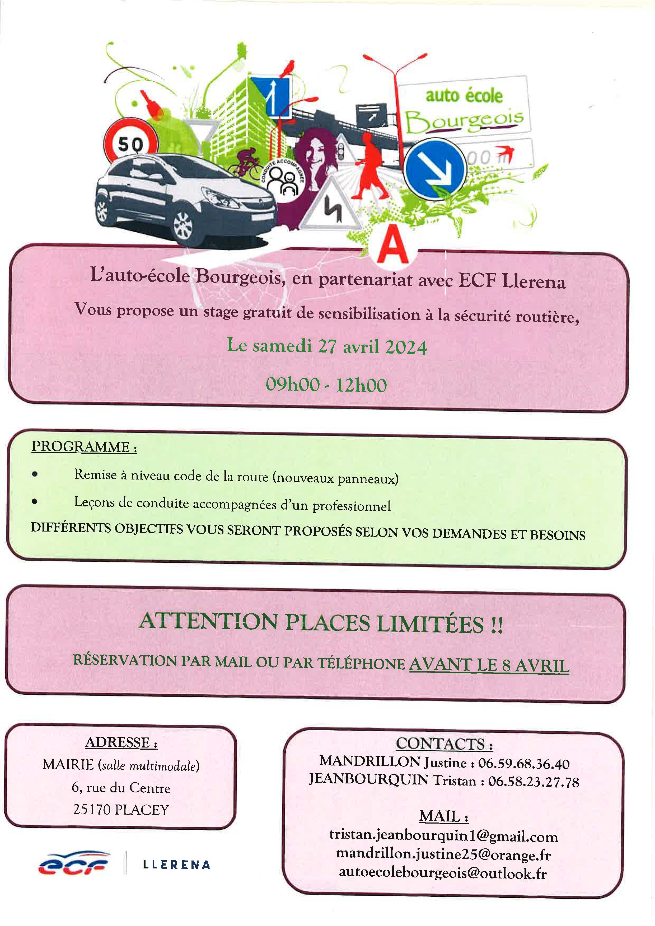 N’oubliez pas de communiquer votre Nom, Prénom, votre commune de résidence, Téléphone et Mail.
