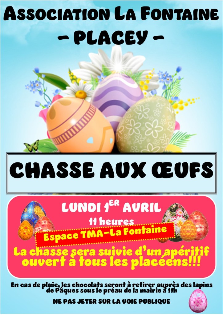 - 📣 Assemblée Générale – Association La Fontaine 📅 Jeudi 5 février à 18h30 5 février 2026 à 18 h 30 min – 19 h 30 min Mairie - Placeyn6 Rue du Centre, 25170 Placey, France